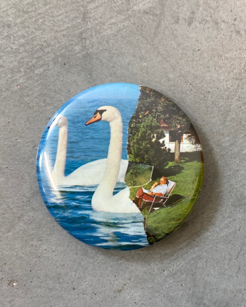 buttons • badges • pins featuring old, recent and brand new collage works