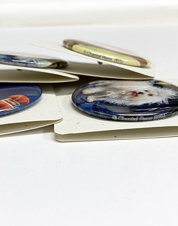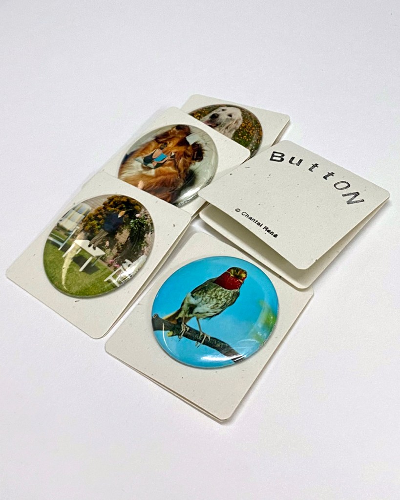 each button is handmade with care • giclée print on archival quality paper • 56mm