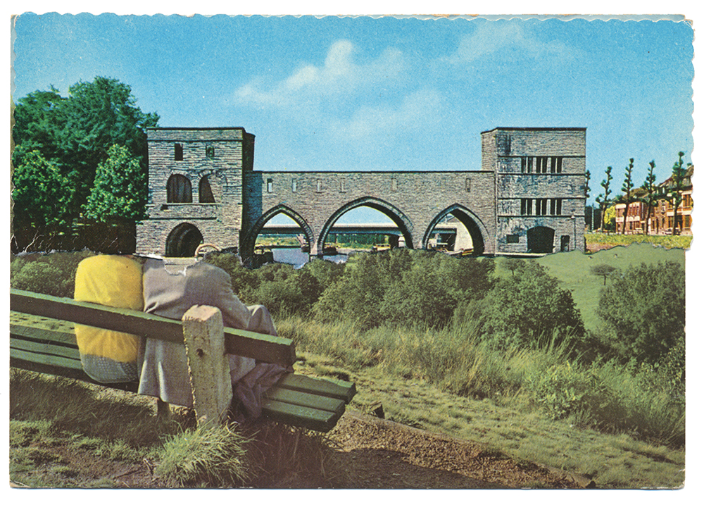THAT’S WHEN WALLS ARE THIN was published with edition Taube in 2020: a limited edition folder with fifteen prints based on a series of analog cut-and-paste collages comprised of monochrome material extracted from Dutch magazines of the 1930s through the 1960s. The collages might induce a nostalgic yearning for a simpler world that does not exist. Yet the temporal displacement is a reminder that nothing was ever perfect, and it never will be.
